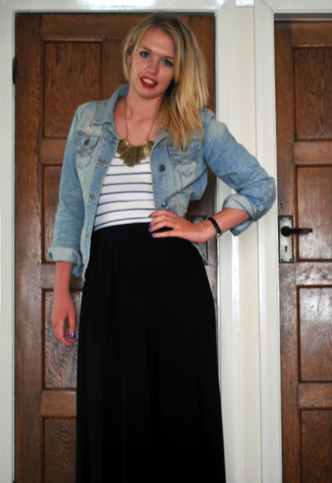 | Denim Jacket | Primark Stripey Boob Tube | H&M Maxi Skirt | Matalan |